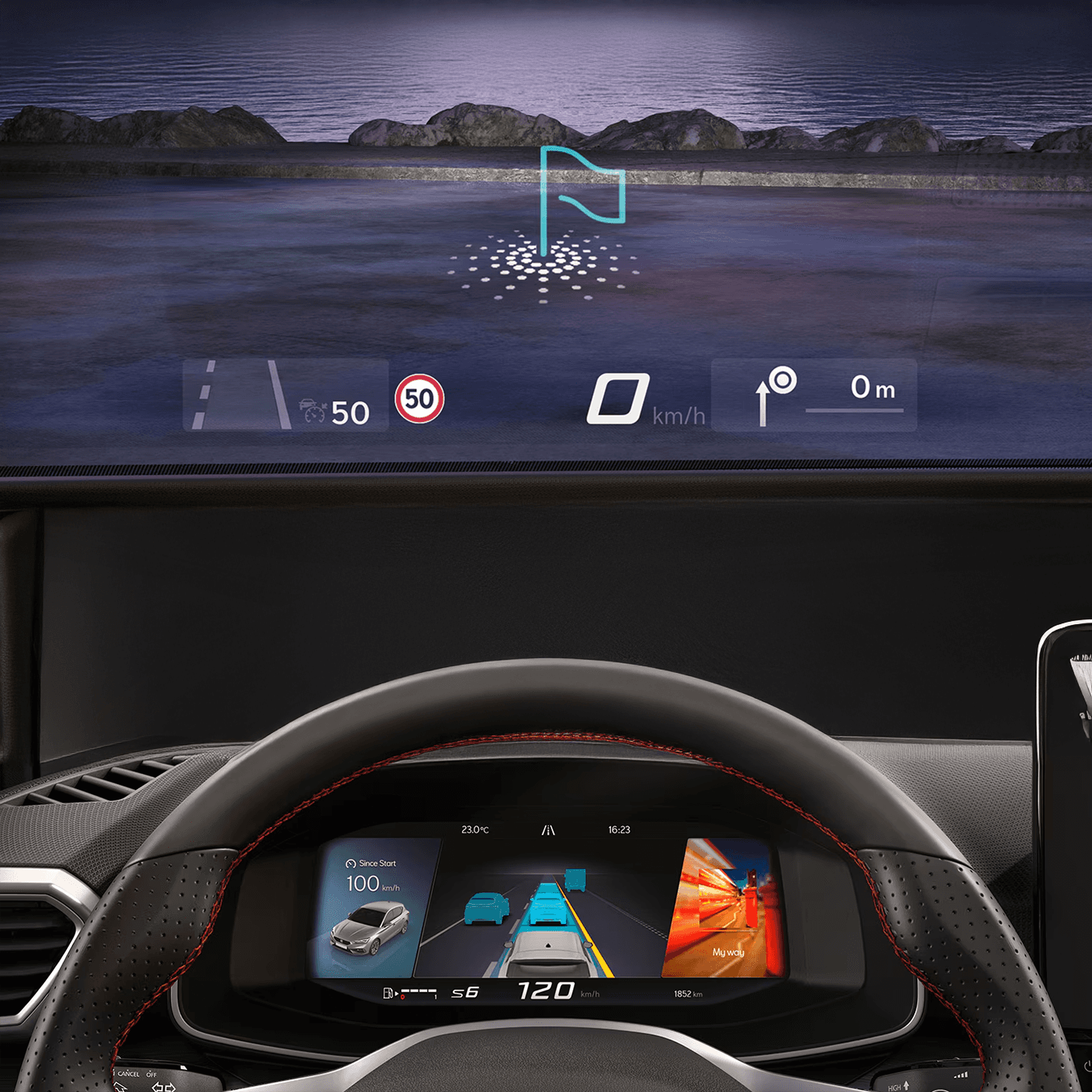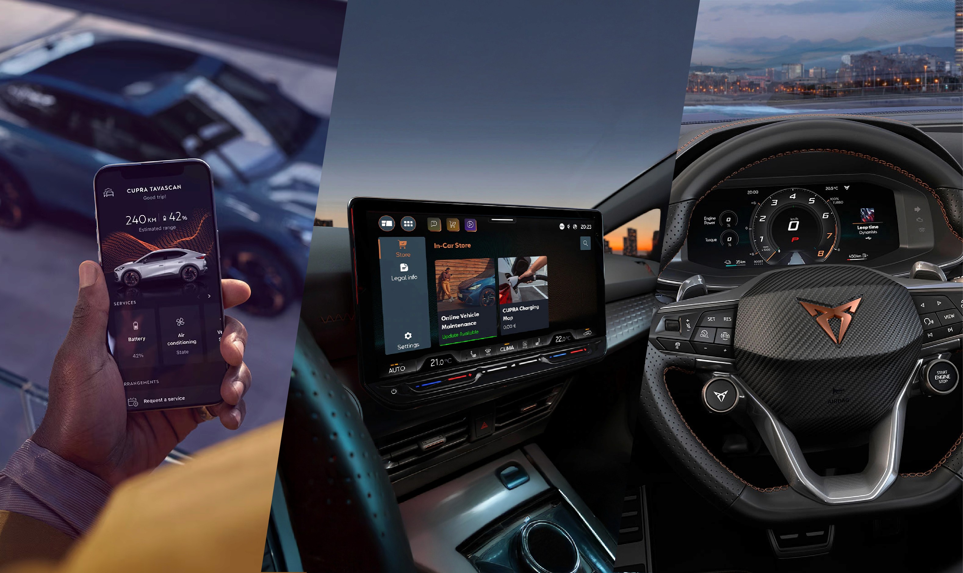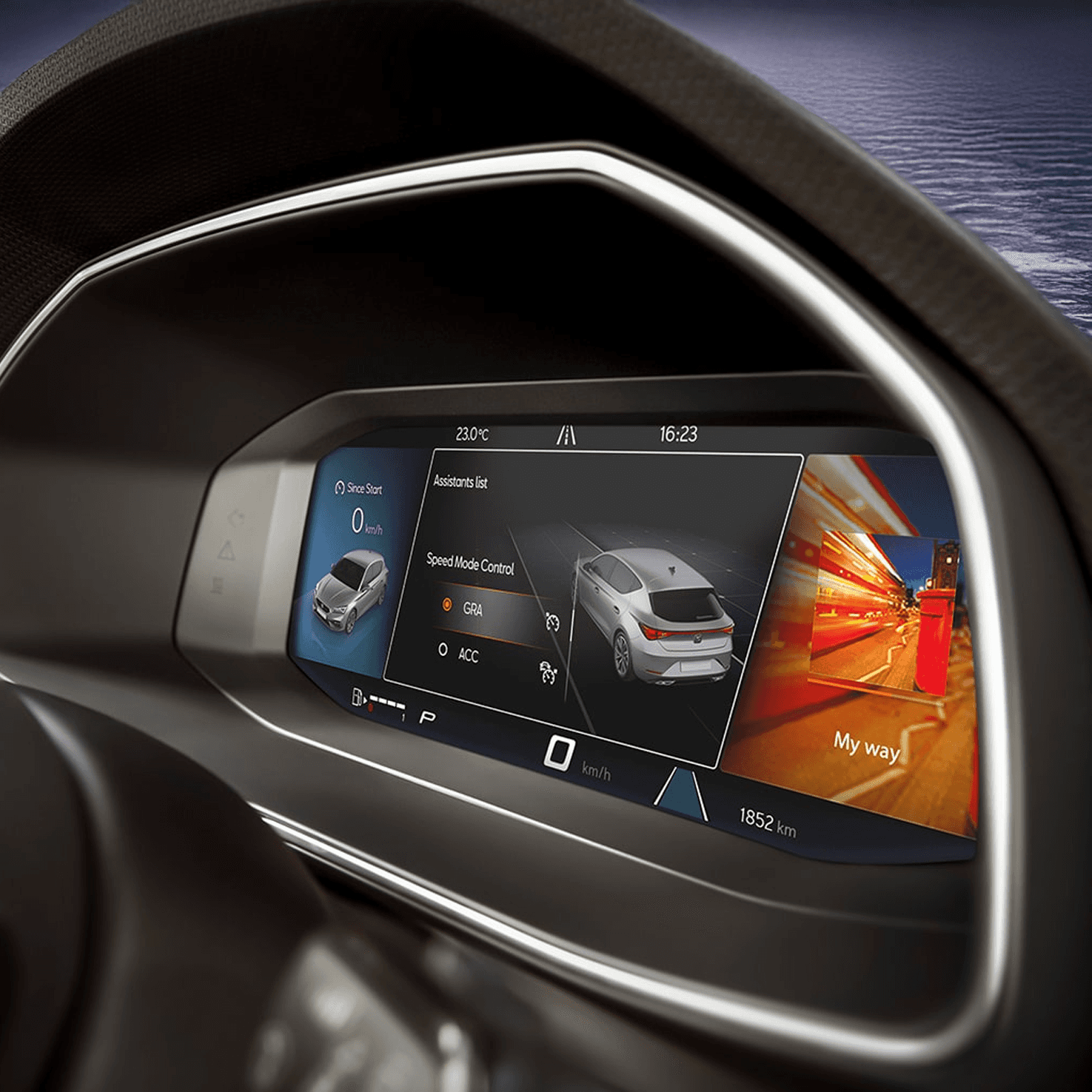 Diseño e implementación de interfaces gráficas para los vehículos de CUPRA, abarcando tanto la pantalla central como el cuadro de instrumentos digital del conductor.